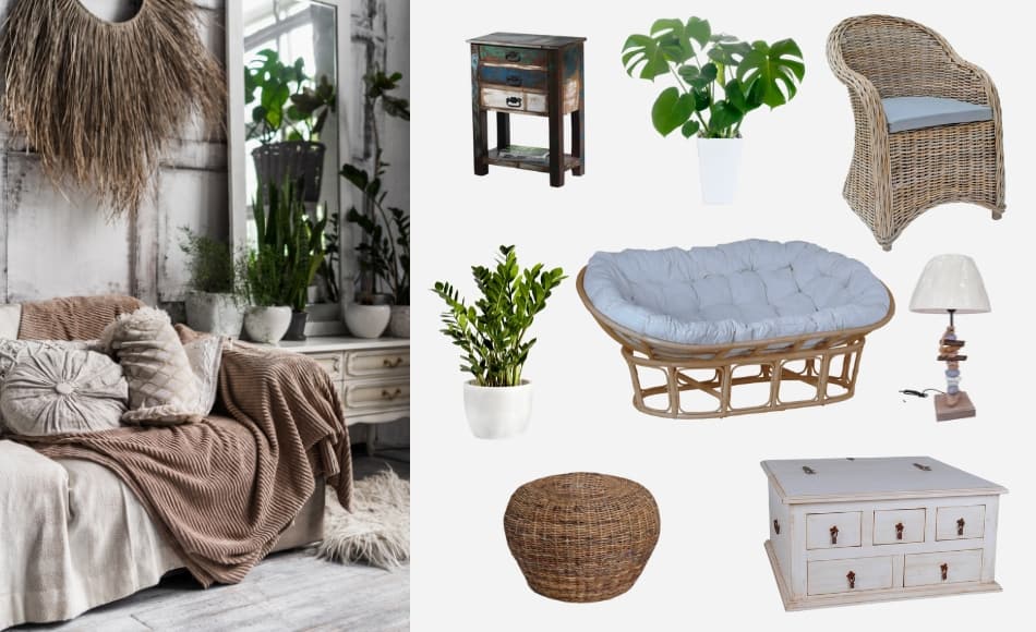 Natürliche Materialien wie Holz, Rattan und Leinen verleihen dem Strandhaus einen organischen und luftigen Charakter. Auch Möbel im Vintagelook oder Shabby Chic lassen sich wunderbar in den Wohnstil integrieren, da der Usedlook perfekt mit Dekoelementen wie Muscheln oder auch Treibholzlampen kombiniert werden kann. Der gedeckte Weißton von natürlichem Leinen wirkt ebenfalls sehr ruhig und stimmig und wird daher wunderbar ergänzt durch luftiges Korbgeflecht, wie es bei Rattanmöbeln der Fall ist.