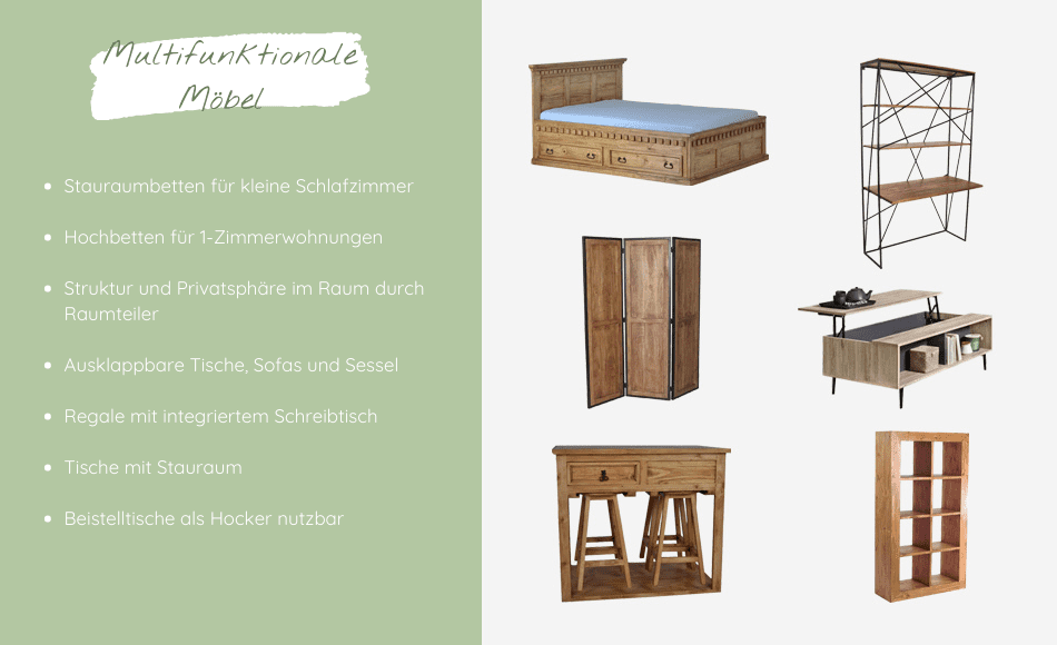 Mit den passenden Möbeln schafft man sich Stauraum und clever genutzt mehr Platz, als man anfangs dachte.